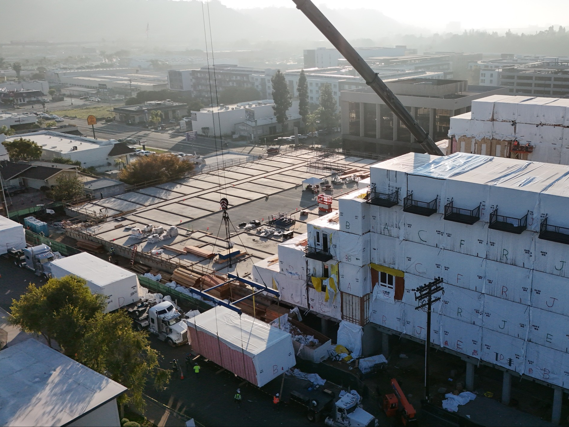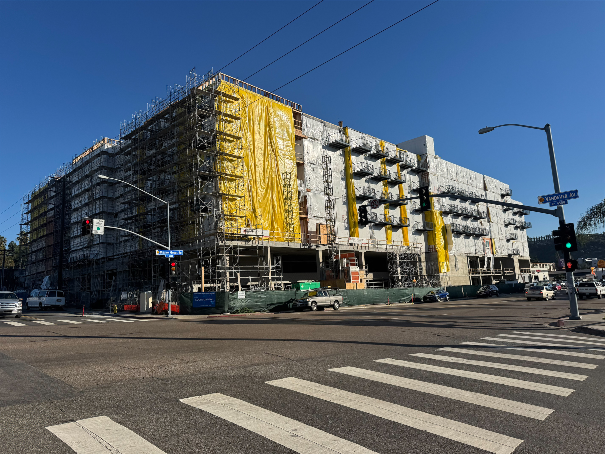 This 53,000 square-foot mixed-use project consists of a 39 unit apartment building with retail space and features a steel-framed podium structure.
